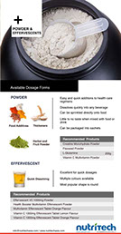 Nutritech has many years of R&D experience specializing development of many Natural Health and FDA approved dietary Supplement with various dosage form. Each product prepared with vary dosage form is selected according the its biological nature, bioavailability and economically availability.