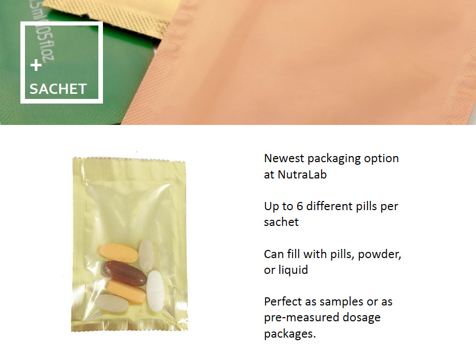 Sachets are a great way to separate out dosages for ease of use. Popular for single dose powders or pairing of multiple supplements at once.